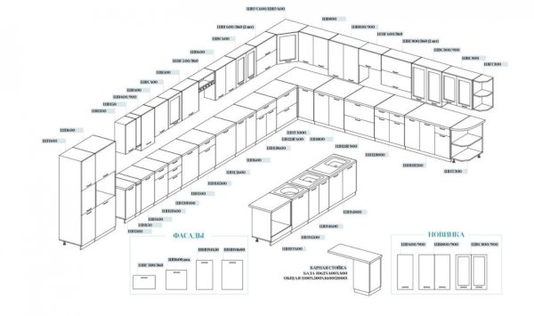 Высота нижних шкафов: 820 мм