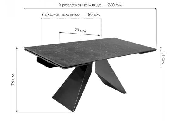 Длина в разложенном виде: 2600 мм